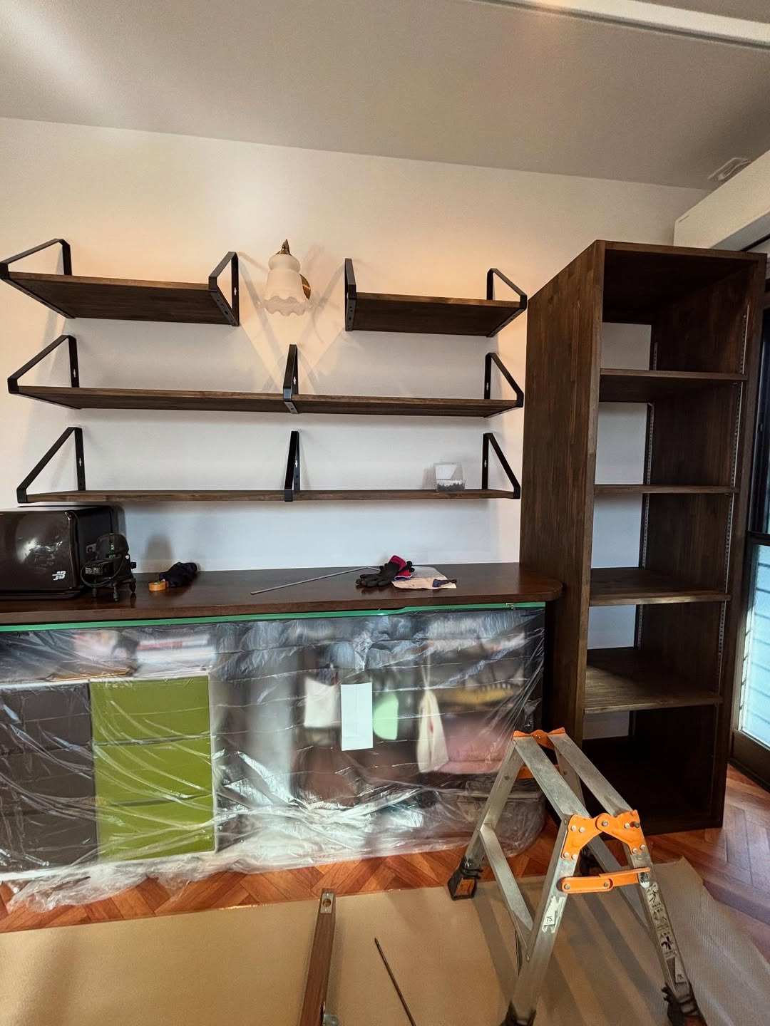 隣には同じ材料で可動棚を設置しました